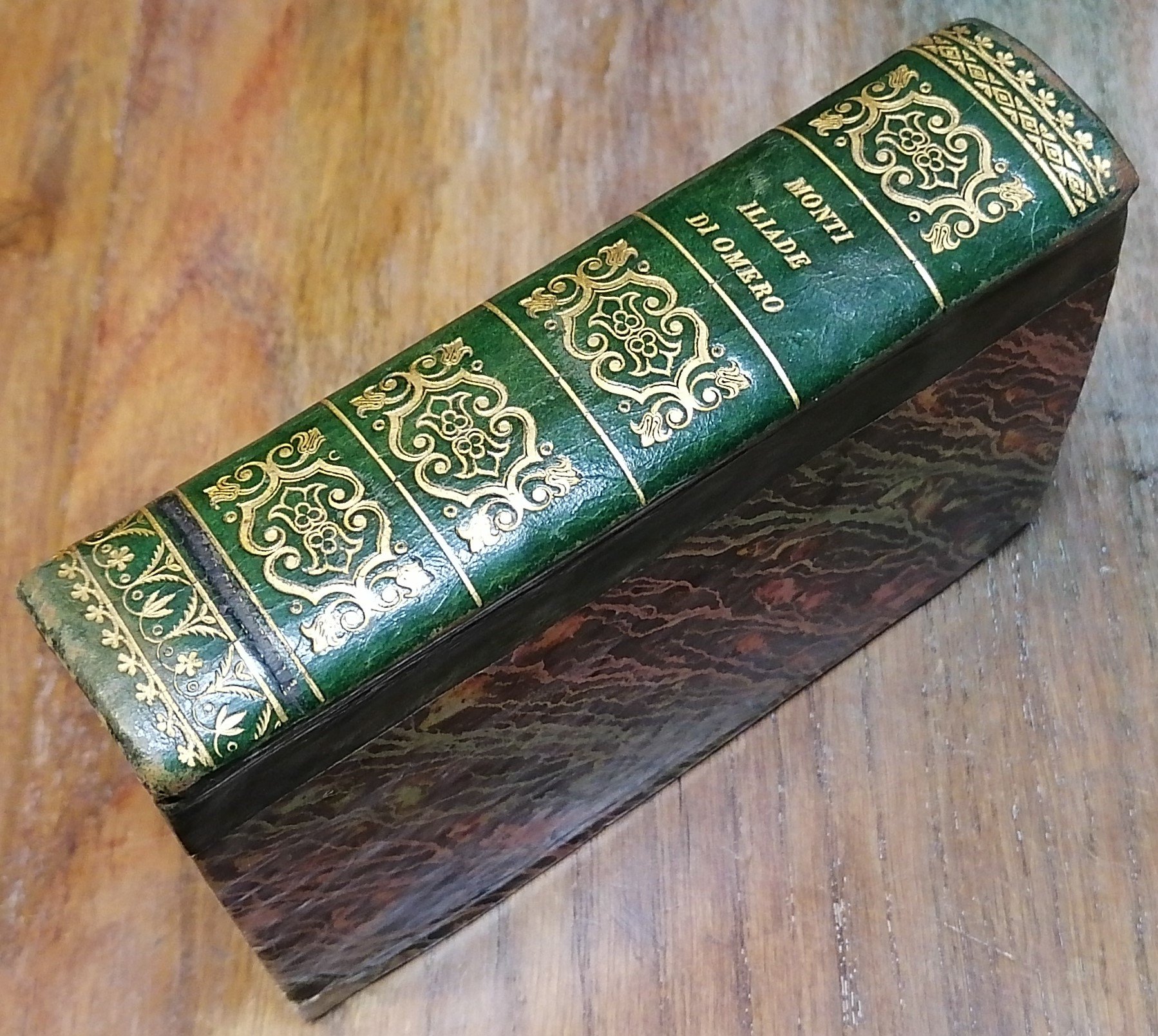 Due volumi riuniti in un tomo in 16°, legatura coeva in mezza pelle con al dorso titoli ed impressioni in oro, tagli colorati, pp. 346 ; 360. Qualche traccia di ossidazione, ma buono stato di conservazione.