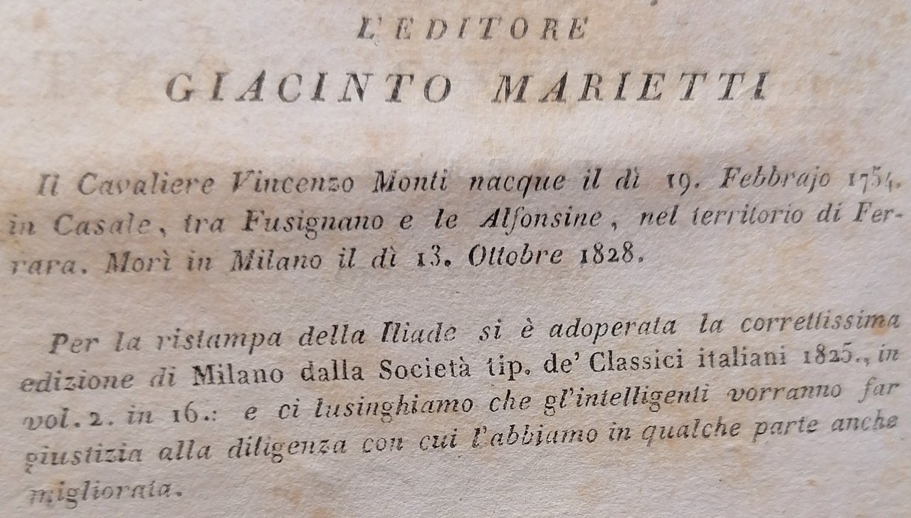 Dell' Iliade di Omero, tradotta dal cavaliere Vincenzo Monti ferrarese.