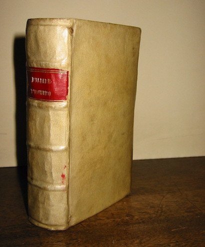 12mo (cm. 13,2), 2 cc.nn., 305 cc., 1 c.nn. Stemma in rosso e nero del Dedicatario al frontespizio. Capilettera xilografici ornati. Legatura antica in piena pergamena con nervetti e titolo oro su tassello in pelle rossa al ds. Tagli azzurri. Un piccolo restauro al margine inferiore bianco delle prime due carte. Occasionali lievi aloni, altrimenti esemplare in ottimo stato di conservazione. Prima rara edizione della traduzione di Bernardino Leo dell’Iliade. Adams H-786. Non in Br. Libr.