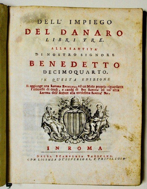Dell'impiego del danaro libri tre. Alla Santità di nostro Signore Papa Benedetto decimoquarto