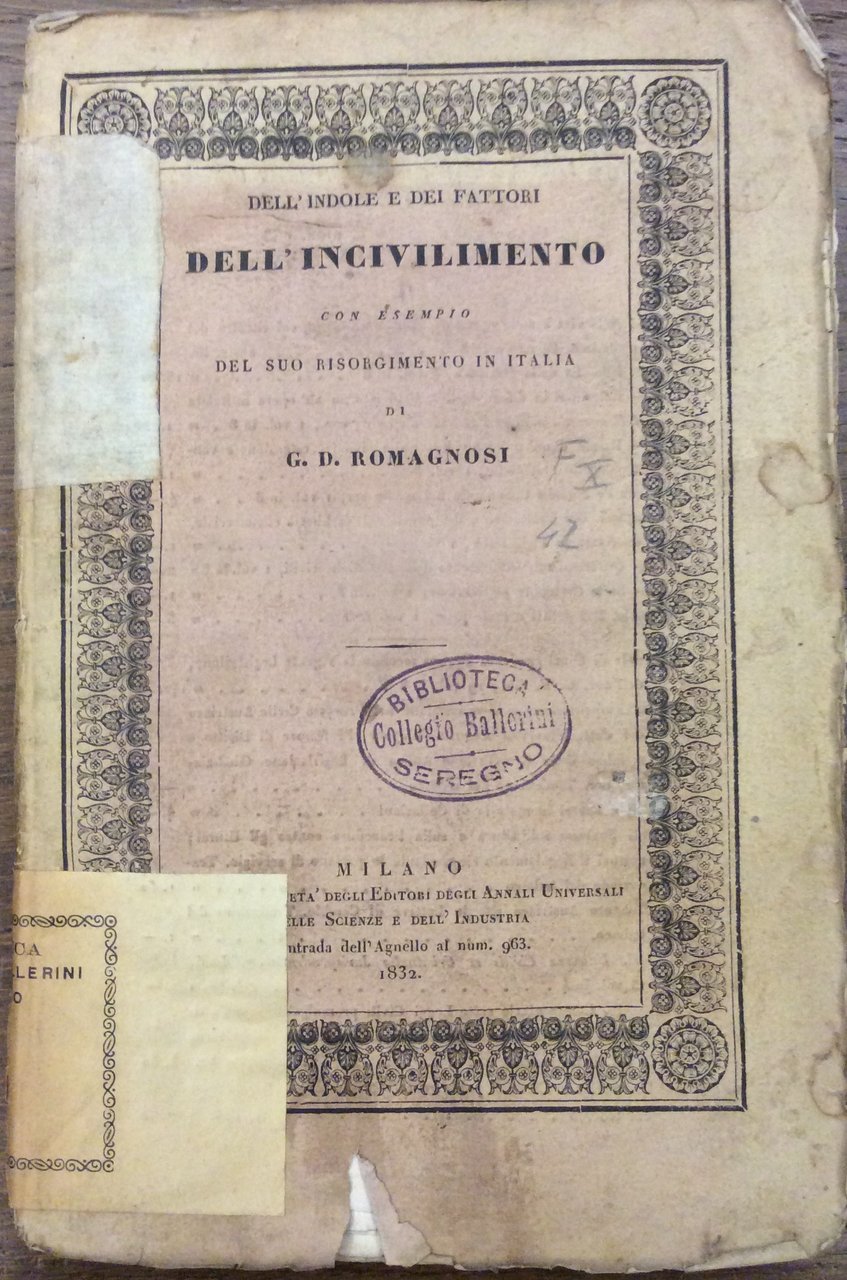 DELL'INDOLE E DEI FATTORI DELL'INCIVILIMENTO CON ESEMPIO DEL SUO RISORGIMENTO IN ITALIA.