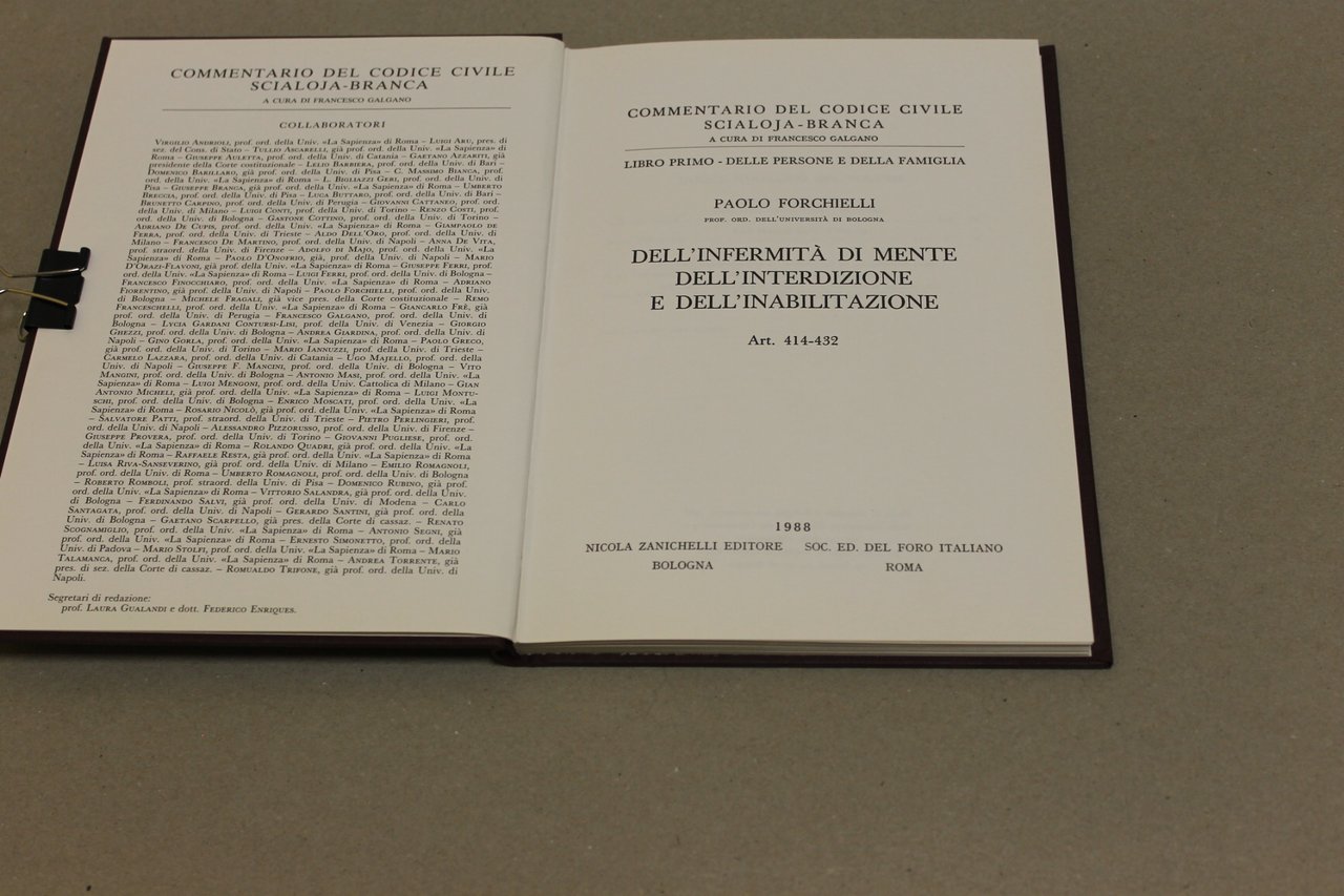 Paolo Forchielli Dell'infermità di mente, dell'interdizione e dell'inabilitazione. Bologna, Zanichelli 1988 italiano, 24,5 17 pp. XII + 77