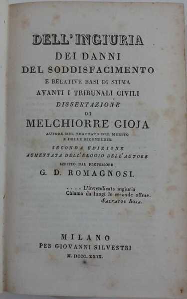 Dell'ingiuria dei danni del soddisfacimento e relative basi di stima avanti i Tribunali Civili