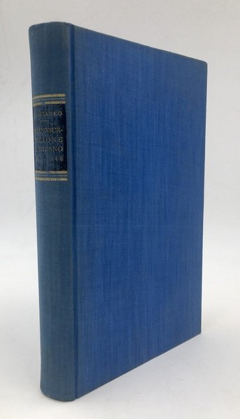In-16° (cm. 18,1), pp. 375, Tela azzurra recente e oro. Conserva all'interno il piatto anteriore della brossura orogoale Ristampa che "riproduce il testo dell'edizione italiana, uscita a Lugano, con le cure dell'autore e per i tipi della Tipografia della Svizzera italiana, nei primi mesi (probabilmente alla fine di febbraio) del 1849". Cronaca degli eventi delle cinque giornate di Milano, degli eventi antecedenti e di quelli conseguenti ad esse, insieme con considerazioni, critiche, punti di vista del Cattaneo a capo del Consiglio di guerra. Netta è la critica nei confronti della gestione delle operazioni da parte di Carlo Alberto di Savoia. Le analisi del Cattaneo sottolineano errori militari e sotterfugi politici della casa piemontese, e rendono l'opera preziosa in quanto distante dalla storiografia ufficiale. In appendice: per riforma della milizia nel Lombardo-Veneto, rivendicazine della lealtà dei volontari repubblicani nella guerra,. appello ai popoli austro-ungarico, Anna Woodcock Cattaneo per la spada di Radetzky. CATTANEO, illuminista e positivista, determinante nelle cinque giornate di Milano del 1848, riparò presso Lugano. Fautore di un forte pensiero liberale e laico federalista e repubblicano, radicale e anticlericale, nel 1839 fondò "IL POLITECNICO. Repertorio mensile di studj applicati alla prosperità e coltura sociale". Dopo il 1860 prospettive ideali vicine al nascente movimento operaio-socialista.