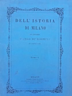 4 volumi in-4° (cm. 29,5), brossure editoriali a stampa (strappetti ai dorsi); pp. XI 428 [2], 534 [2], 594 [2], 528 in buono stato con 57 illustrazioni in rame (di cui 22 f.t.) e 2 piante ripiegate f.t. (città e ducato di Milano) come da indici; carte in buono stato, parzialmente intonse, con qualche traccia di polvere marginale e sporadiche lievi fioriture. Prima edizione di questa classica storia della città col suo notevole apporto iconografico. Il quarto volume è interamente dedicato alla raccolta dei documenti inediti che affiancano l'opera. «Ebbe questa storia lode di esattezza, d'imparzialità, di sana critica e di essere scritta in stile rapido, chiaro ed elegante». [Zannoni. Antologia XXVIII, 140]. Cfr. Predari 184. Buon esemplare genuino. (SC6-2c)