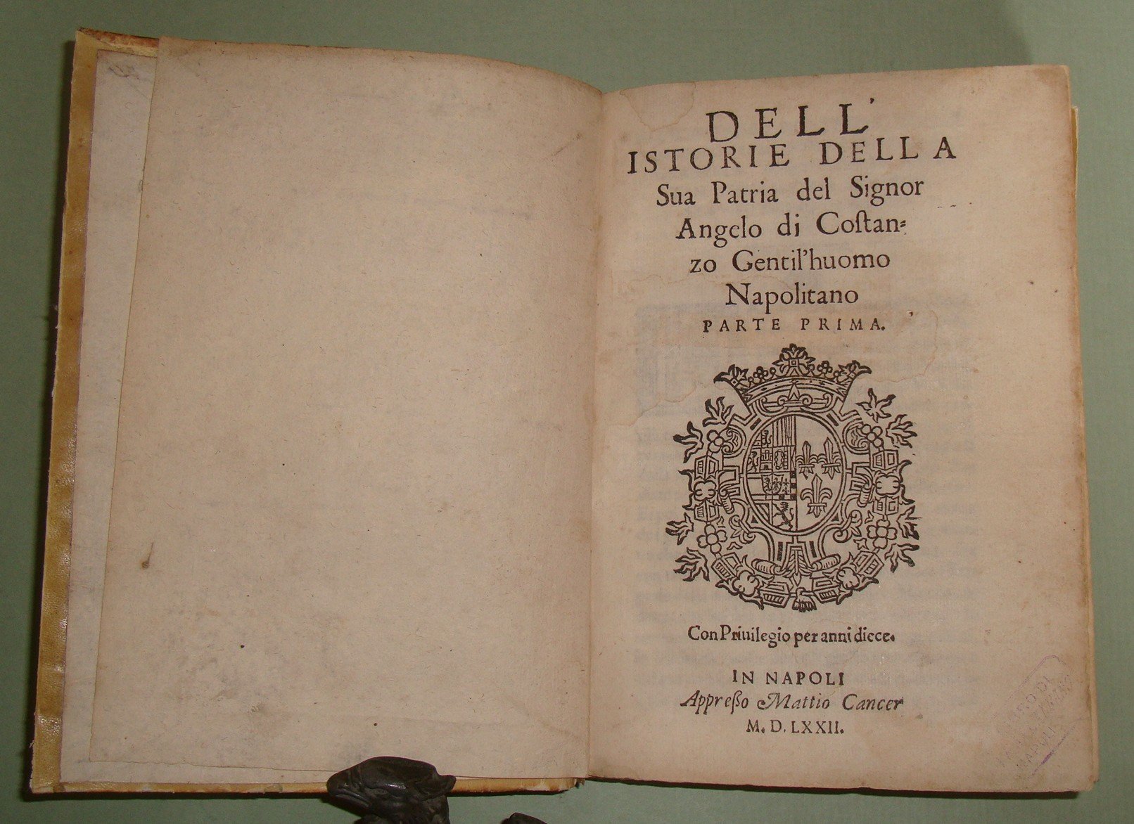 Dell'Istorie della sua Patria del Signor Angelo di Costanzo Gentil'huomo Napolitano. Parte prima. Con Privilegio per anni diece.