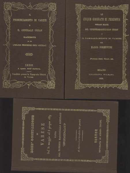 Dell'occupazione di Varese dal 31 maggio al 5 giugno 1859 fatta dal tenente maresciallo generale Urban - Il pronunciamento di Varese e il generale Urban - Le cinque giornate di prigionia nelle mani del tenente maresciallo Urban