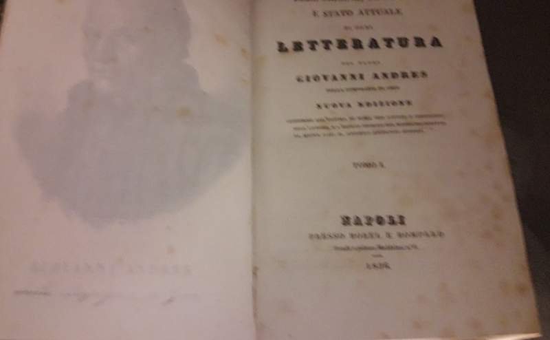 Opera in 4 voll. divisa in VIII tomi in 8, leg. in m. pelle, titoli e fregi in oro al dorso, piatti marmorizzati, tagli spruzzati, pp. L, 375; VII, 315; VII, 395; XI, 343. Ritratto dell'Autore protetto da velina. Fioriture all'interno, firma di appartenenza su tutti i voll. all'interno del piatto anteriore. Buonissime condizioni. Notevole opera del gesuita spagnolo Juan Andr (1740 - 1820). Quando i gesuiti furono espulsi dalla Spagna nel 1767, dopo un primo periodo in Corsica, Andr si trasferisce in Italia e nel 1782 pubblica il primo volume dell'opera, che sarl'evento letterario dell'anno in Italia e avrun successo clamoroso in tutta Europa. Luogo di pubblicazione NapoliEditore Borel e Bompard Anno pubblicazione 1836Materia/Argomento Storia della Letteratura ***Due to bureaucratic reasons, books dated over 70 years old cannot be immediately exported, please contact us before placing the order.***