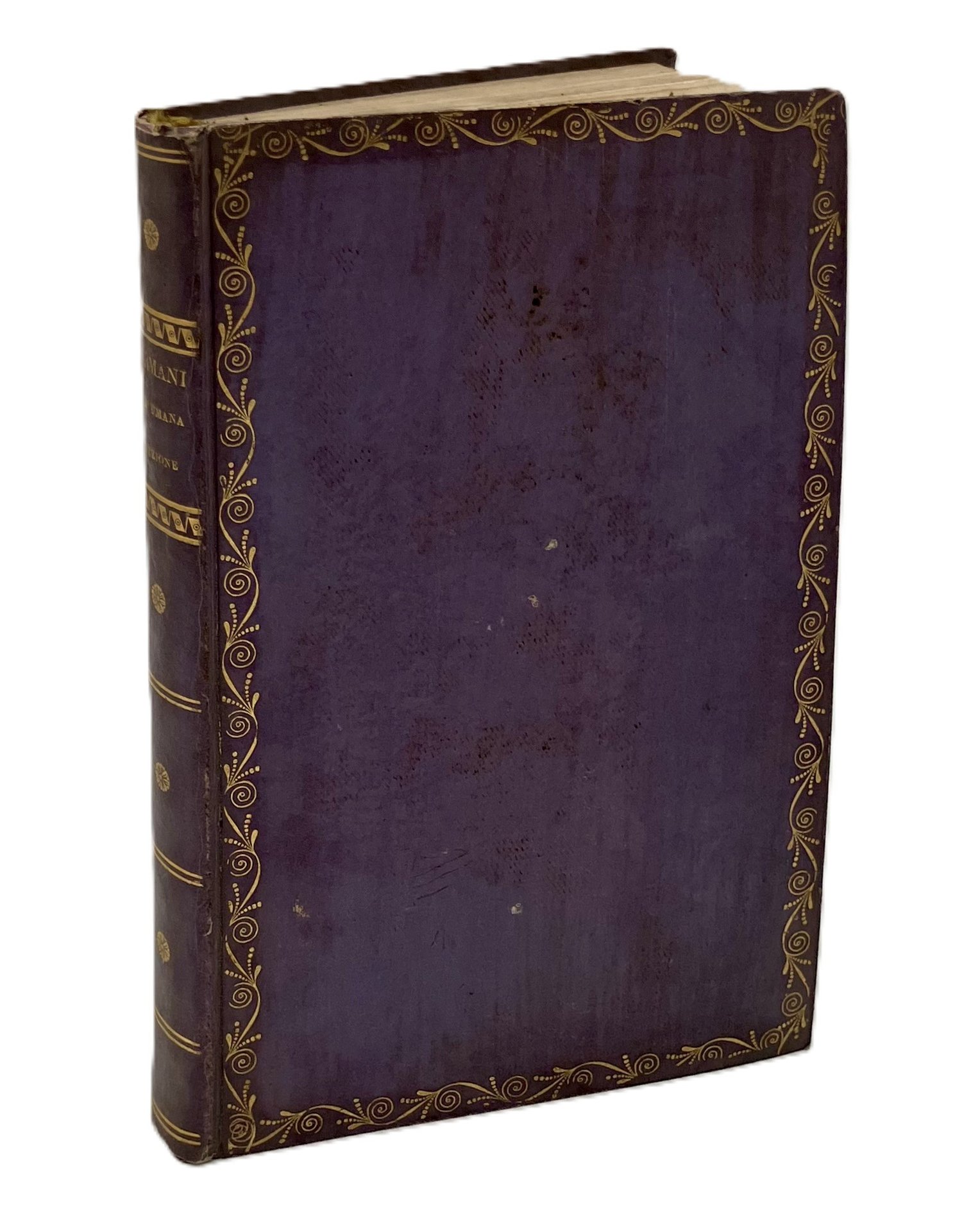 In 8vo (203x120 mm). XVI, 253, [1] pp. Legatura coeva in pieno cartonato lilla con eleganti fregi in oro ai piatti e al dorso. Esemplare ottimo, con dedica manoscritta dell’autore al conte Girolamo Tadini Oldofredi.