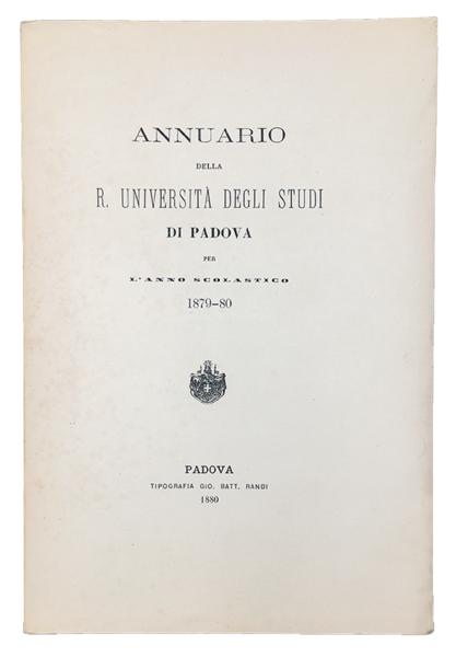 Dell'UNIVERSITÁ e dei suoi STUDI. ORAZIONE INAUGURALE de' Corsi Accademici dell'anno 1879-80 letta nll'Aula Magna dell'Università il 19 novembre 1879 dal Professore ordinario di MATERIA MEDICA e TERAPEUTICA. [Acuminato confronto con le Università tedesche, inglesi ecc. 40 pagine su ANATOMIA, MEDICINA, CRIMINOLOGIA.] In: Annuario della R. (Università degli Studi di PADOVA.