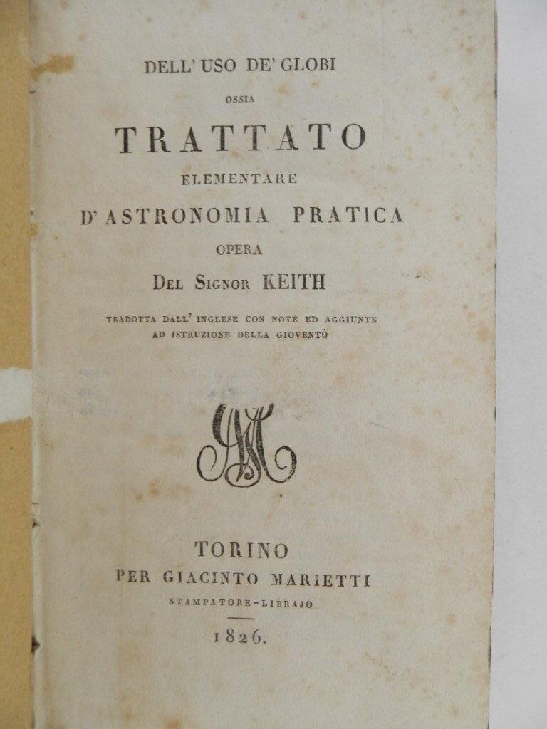 Dell'uso de' globi ossia trattato elementare d'astronomia pratica opera del signor Keith tradotta dall'inglese con note ed aggiunte ad istruzione della gioventù