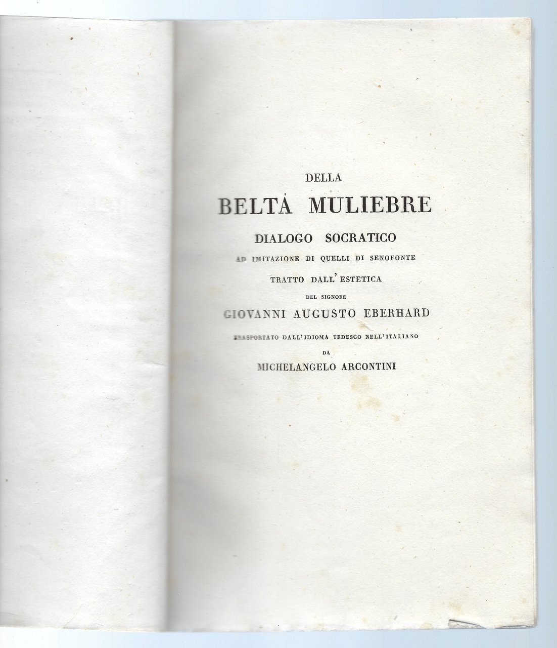 Della beltà muliebre. Dialogo socratico ad imitazione di quelli di Senofonte tratto dall'Estetica di Eberhard (1738-1809)