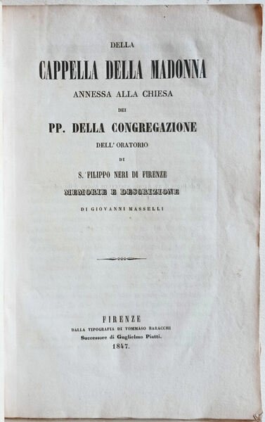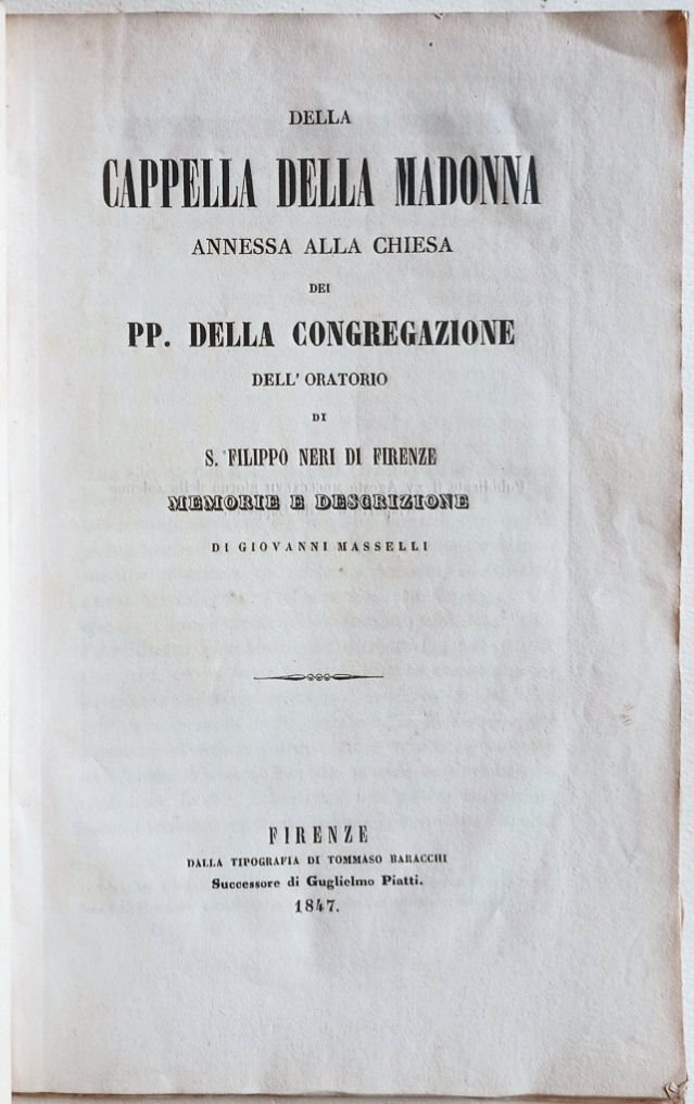 Della cappella della Madonna annessa alla chiesa dei PP. della Congregazione dell'oratorio di S. Filippo Neri di Firenze. Memorie e descrizione.