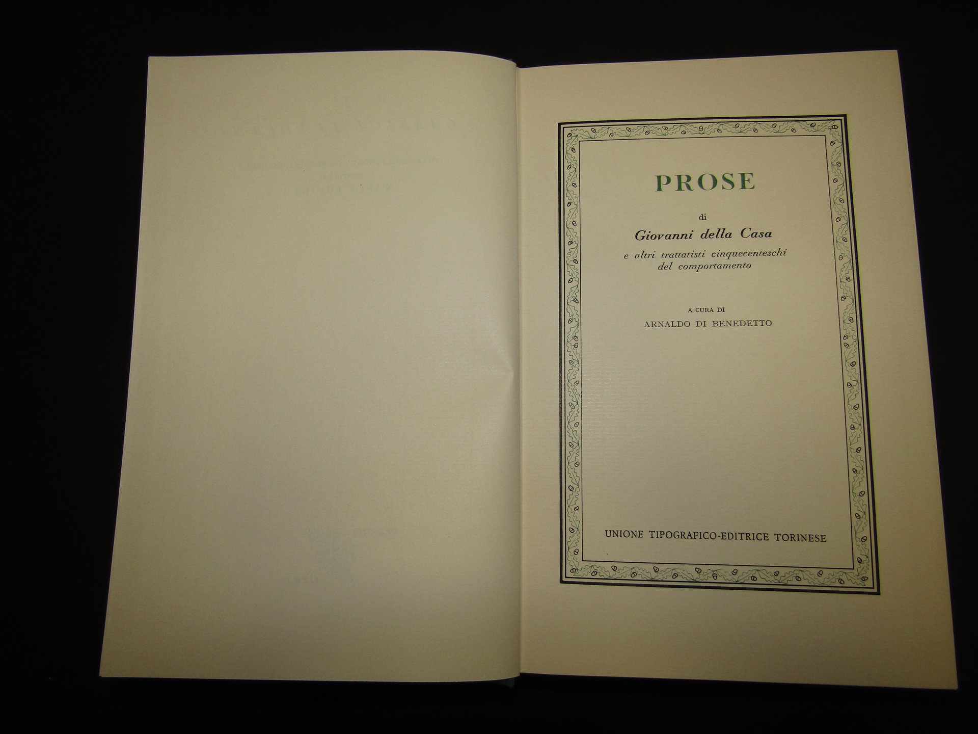 Prose di Giovanni della Casa e altri trattatisti cinquecenteschi del comportamento. a cura di Arnaldo di Benedetto. UTET. 1970