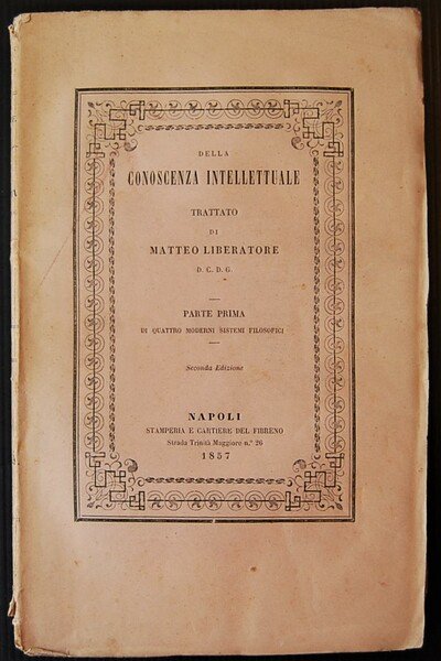 Stamperia del Fibreno, 1857. In-8, brossura, XXVII,356. Esemplare con fioriture e alcune sottolineature a matita.