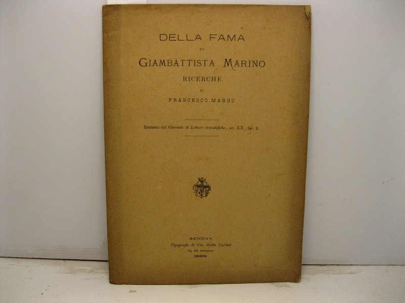 Della fama di Giambattista Marino. Ricerche. Estratto dal Giornale di Letture Scientifiche, anno XX, fasc. 2