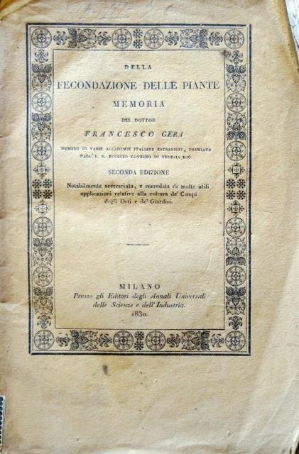 Della fecondazione delle piante. Memoria del Dottor Francesco Gera.