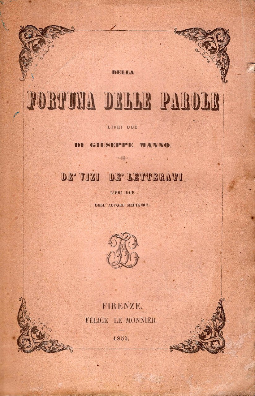 Della fortuna delle parole libri due. De' vizi de' letterati libri due. Di Giuseppe Manno