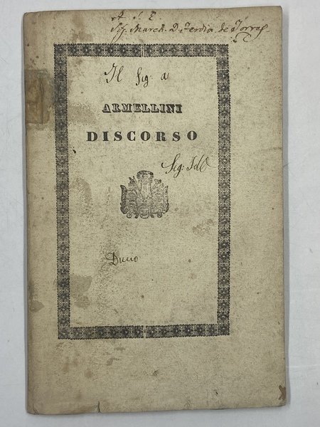 DELLA GIUSTIZIA DISCORSO DI GIACINTO ARMELLINI. TERAMO 1835. Da Tipi di Giuseppe Marsilii.