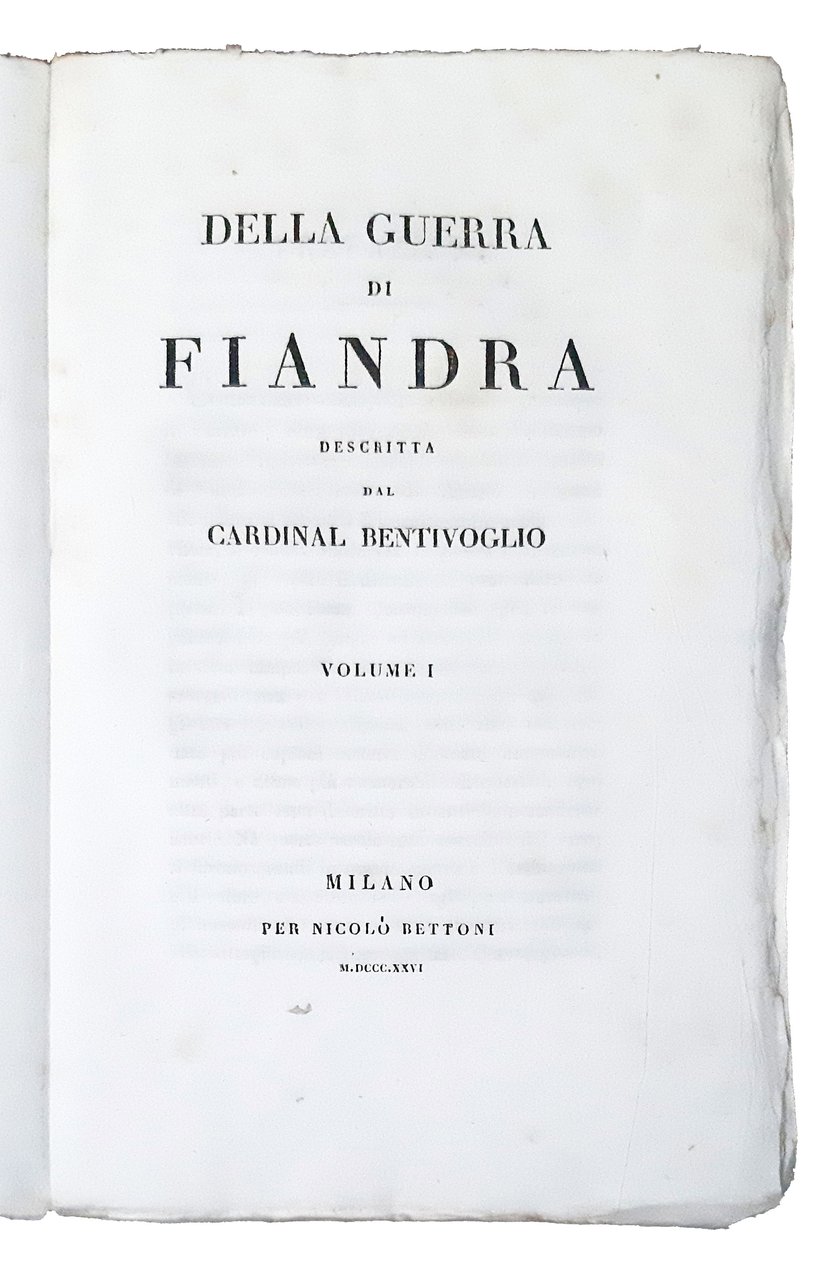 in-4°, 230x146 mm, leg. in brossura editoriale con copertina in carta leggera, fregi e titoli in nero; opera in 3 volumi; pp. VIII, [1], 494, [2]; 434, [2], 400. Opera appartenente alla collezione "Biblioteca storica di tutte le nazioni. Classe seconda". Prima edizione milanese di questo classico della storia delle Fiandre. Bentivoglio, Guido (1577-1644) è stato un cardinale, arcivescovo cattolico e storico italiano. Erede della tradizione storiografica iniziata da Guicciardini, le sue opere rappresentano una tappa fondamentale nell'elaborazione della moderna metodologia storica. Rif.: IT\ICCU\NAPE\000296. OCLC, 491639217. Cond.: Segni d'uso alla legatura (strappi sui bordi, alcune mancanze alle cuffie, forti bruniture al dorso, macchie). Carte in barbe e intonse, con occasionali fioriture. Opera in condizioni generali abbastanza buone.