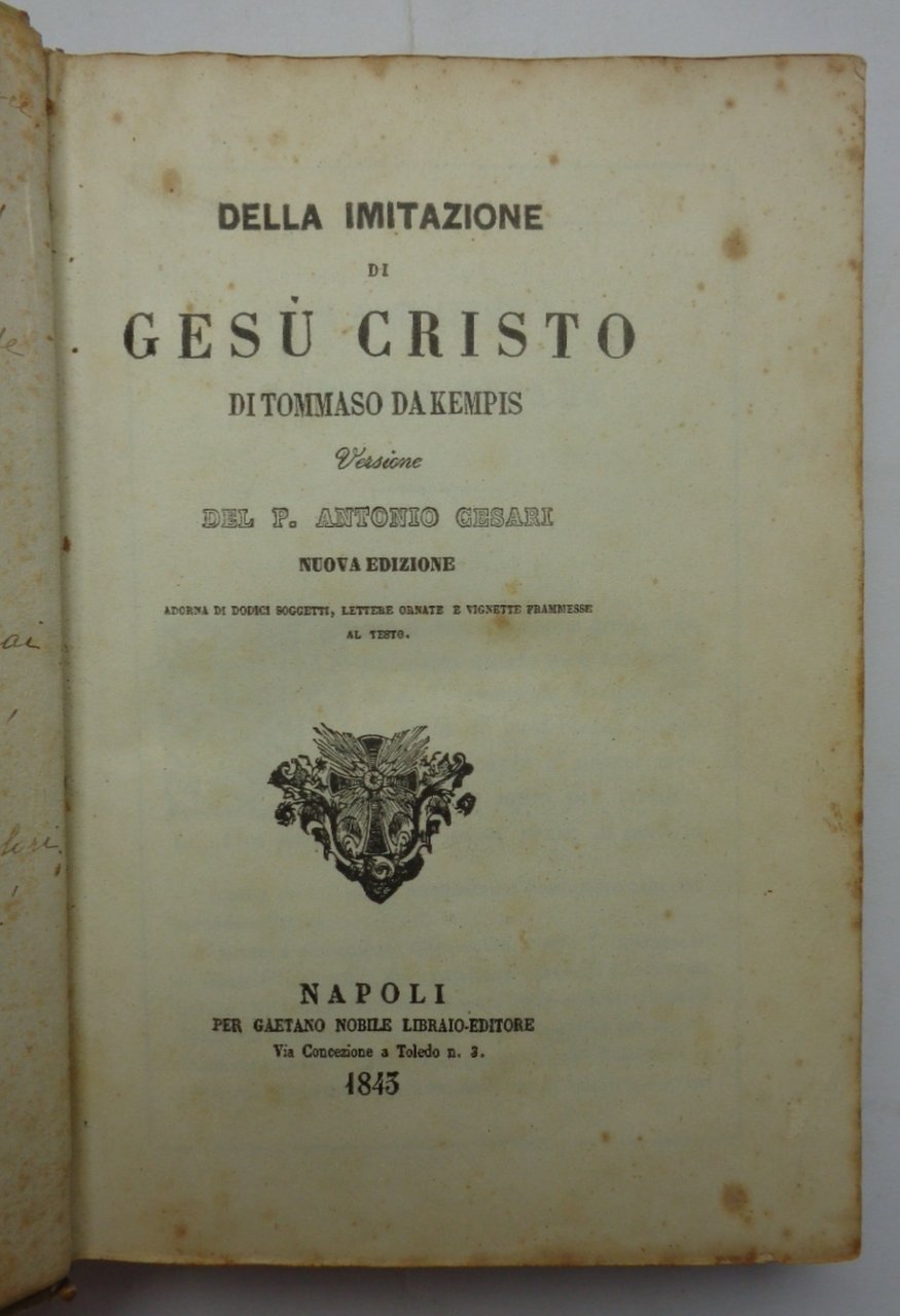 DELLA IMITAZIONE DI GESÙ CRISTO. Versione del P. Antonio Cesari, nuova edizione, adorna di 2 incisioni in acciaio, di 12 soggetti, lettere ornate e vignette frammesse al testo.