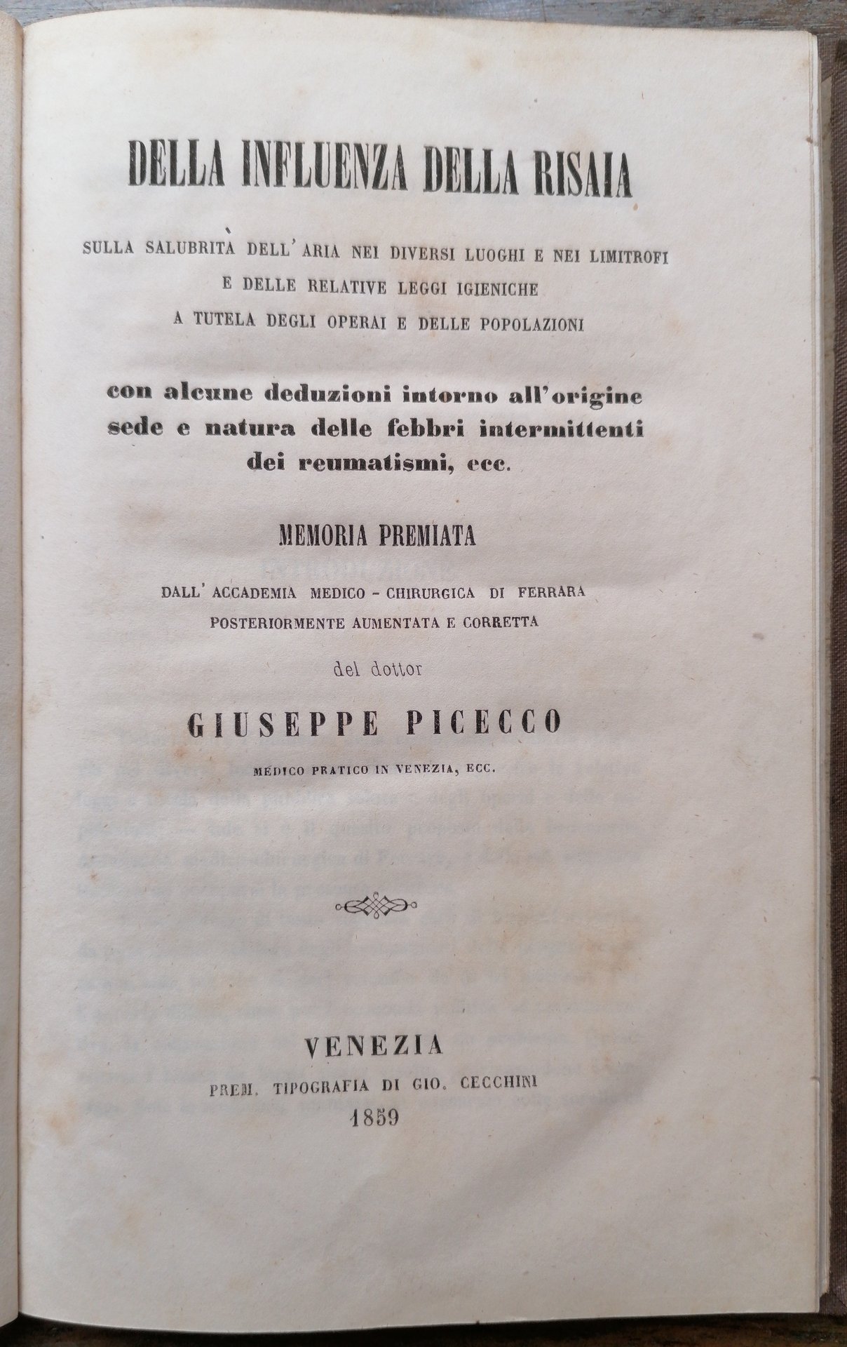 Della influenza della risaia sulla salubrità dell'aria nei diversi luoghi e nei limitrofi e delle relative leggi igieniche a tutela degli operai e delle popolazioni, con alcune deduzioni intorno all'origine sede e natura delle febbri intermittenti dei reumatismi, ecc. .