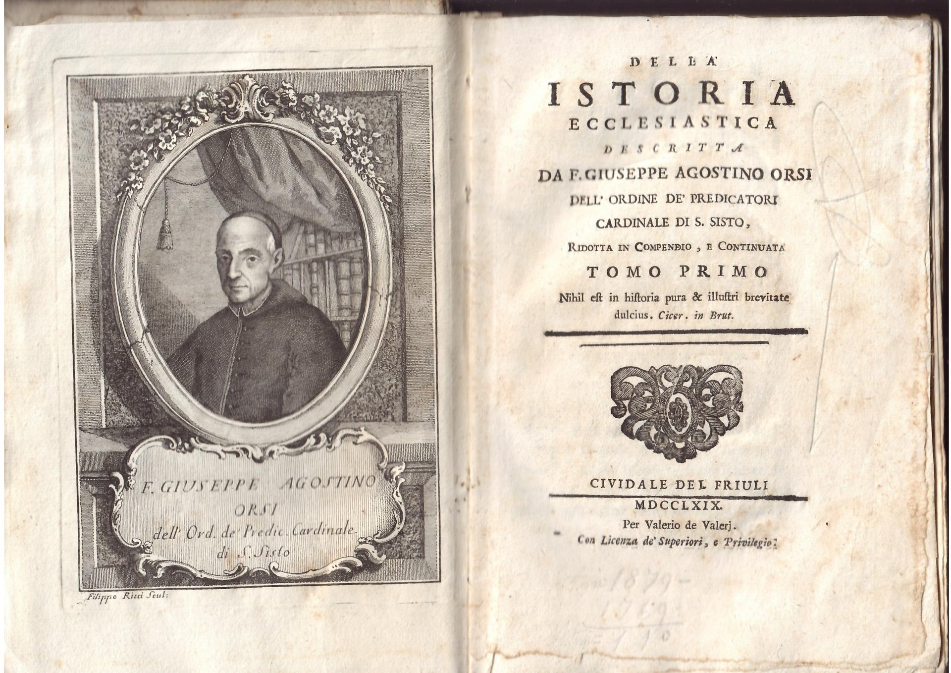 DELLA ISTORIA ECCLESIASTICA DESCRITTA DA F. GIUSEPPE AGOSTINO ORSI - TOMO PRIMO