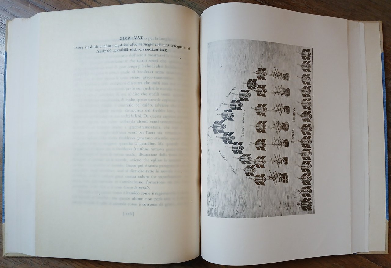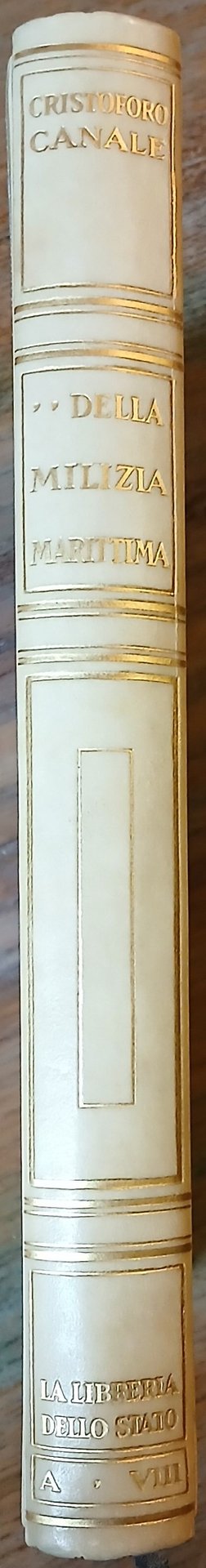 Trascrizione e annotazioni di Mario Nani Mocenigo. In 4°, legatura editoriale in mezza pergamena con angoli, tela azzurra ai piatti, titoli ed impressioni in oro al dorso, titoli e fregio dorati entro tripla cornice al piatto anteriore , taglio di testa dorato, segnalibro in seta, pp. 324,(8), con 32 tavole in fototipia protette da veline fuori testo. Pubblicazione integrale del trattato manoscritto sulla marina militare veneziana di Cristoforo Canale (Canal). Il testo è ricavato dalla copia proveniente dalla biblioteca dell'ex Marina Militare Austriaca di Pola, ora nel Museo Storico Navale di Venezia. L'opera, databile secondo Mario Nani Mocenigo al 1540, è dedicata a Nicolò Gabrielli ed è impostata in forma di conversazione alla quale l'autore fa partecipare quattro dei più notevoli personaggi vissuti a Venezia in quegli anni e che occuparono altissimi posti nel governo della Repubblica : Il Capitano Generale da mar Vincenzo Cappello, il Provveditore Generale d'Armata Alessandro Contarini ed i Senatori Marc' Antonio Cornaro e Giacomo Canale zio di Cristoforo. Esemplare n. 207 della tiratura stampata su carta di Maslianico di 321 copie numerate.