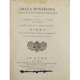 Della monarchia trattato filosofico politico in cui si dimostra, ch'essa è la forma di governo la più utile all'umana società. Opera di Luigi Martorelli osimano canonico della Basilica Vaticana