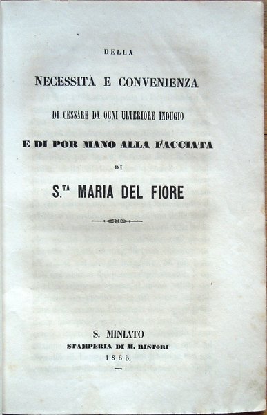 Della necessità e convenienza di cessare di ogni ulteriore indugio e di por mano alla facciata di S.ta Maria del Fiore