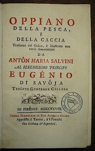 Della pesca e della caccia tradotto dal greco e illustrato con varie annotazioni da Anton Maria Salvini.