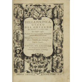 Della politica, overo del governo di stato libri sei di Giusto Lipsio. Tradotti di latino in volgare, & ampliati con dottissime annotazioni dal già Sig. Cavalier Hercole Cati gentilhuomo Ferrarese. Con tre tavole. Dedicati al Card. Aldobrandino