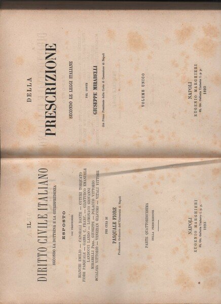 Copertina in mezza pelle, con segni d'uso. Dorso con impressioni in oro. Sguardie con fioriture e gore e con scritta a matita. Copertina rigida Buono (Good) .