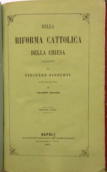 DELLA RIFORMA CATTOLICA DELLA CHIESA + DELLA FILOSOFIA DELLA RIVELAZIONE