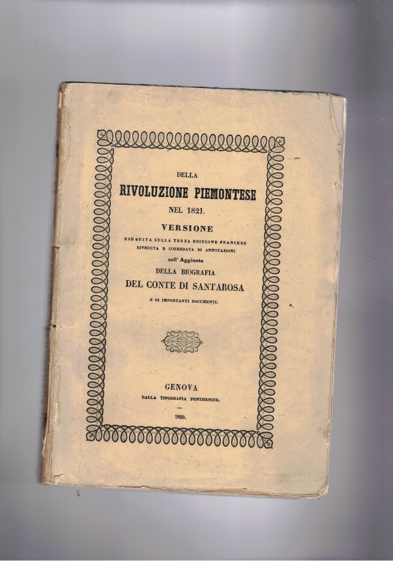 Della rivoluzione piemontese nel 1821. Versione sulla terza edizione francese, riveduta e corredata di annotazioni, coll'aggiunta della biografia del conte di Santarosa e di importanti documenti.