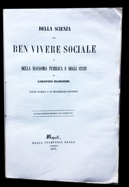 Della Scienza del Ben Vivere Sociale e della Economia degli Stati di Lodovico Bianchini parte storica e di preliminari dottrine, Seconda edizione, riveduta e corretta.