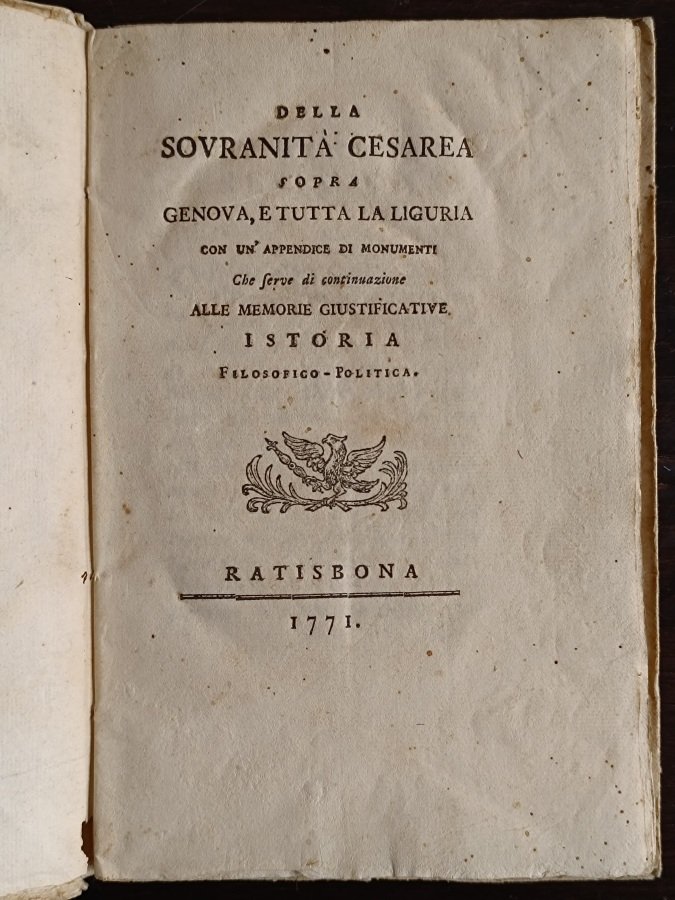 Della sovranità cesarea sopra Genova, e tutta la Liguria, con un'appendice di monumenti che serve di continuazione alle memorie giustificative. Istoria filosofico-politica.