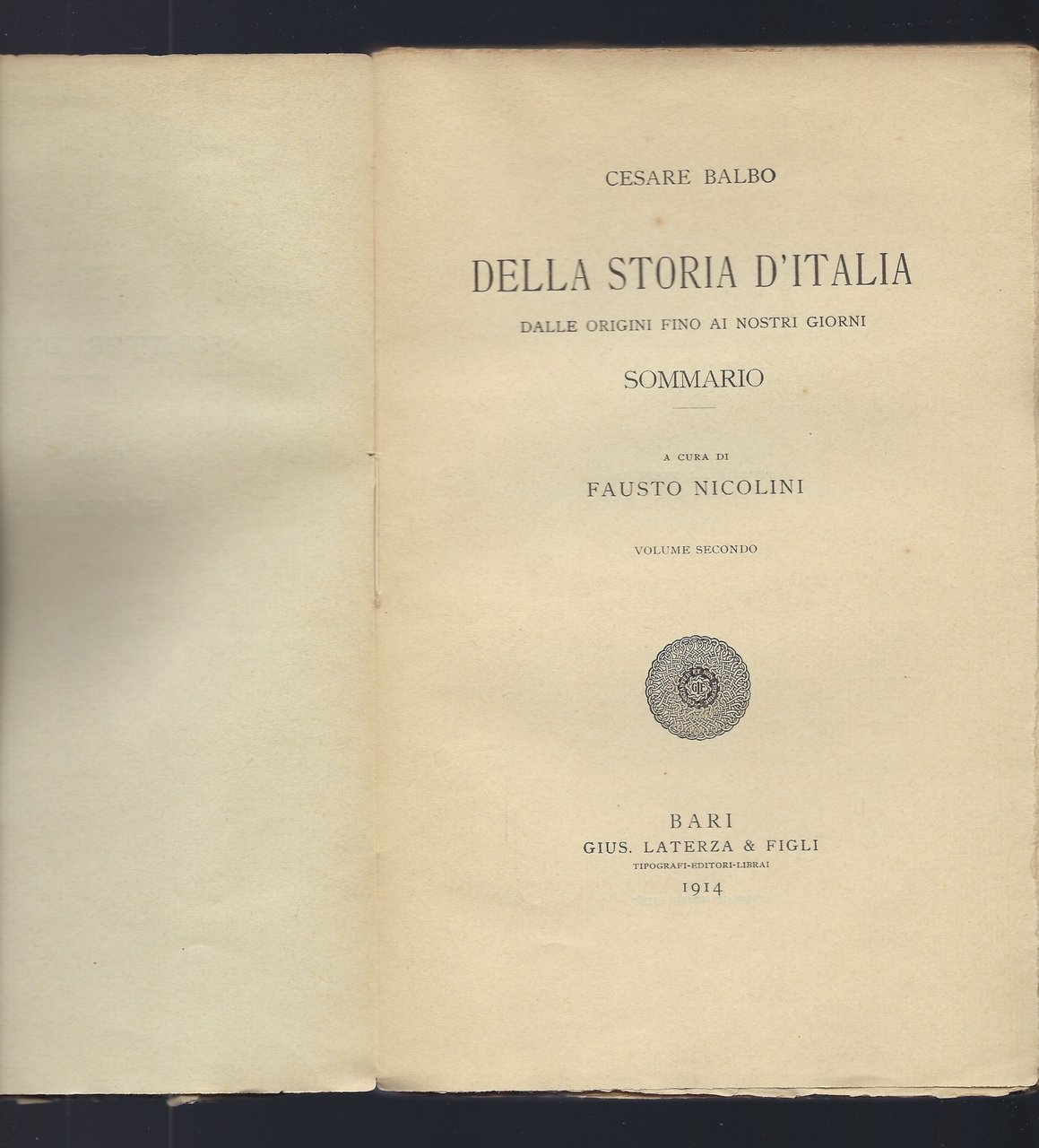 Della Storia d'Italia. Dalle origini fino ai nostri giorni. Sommario.