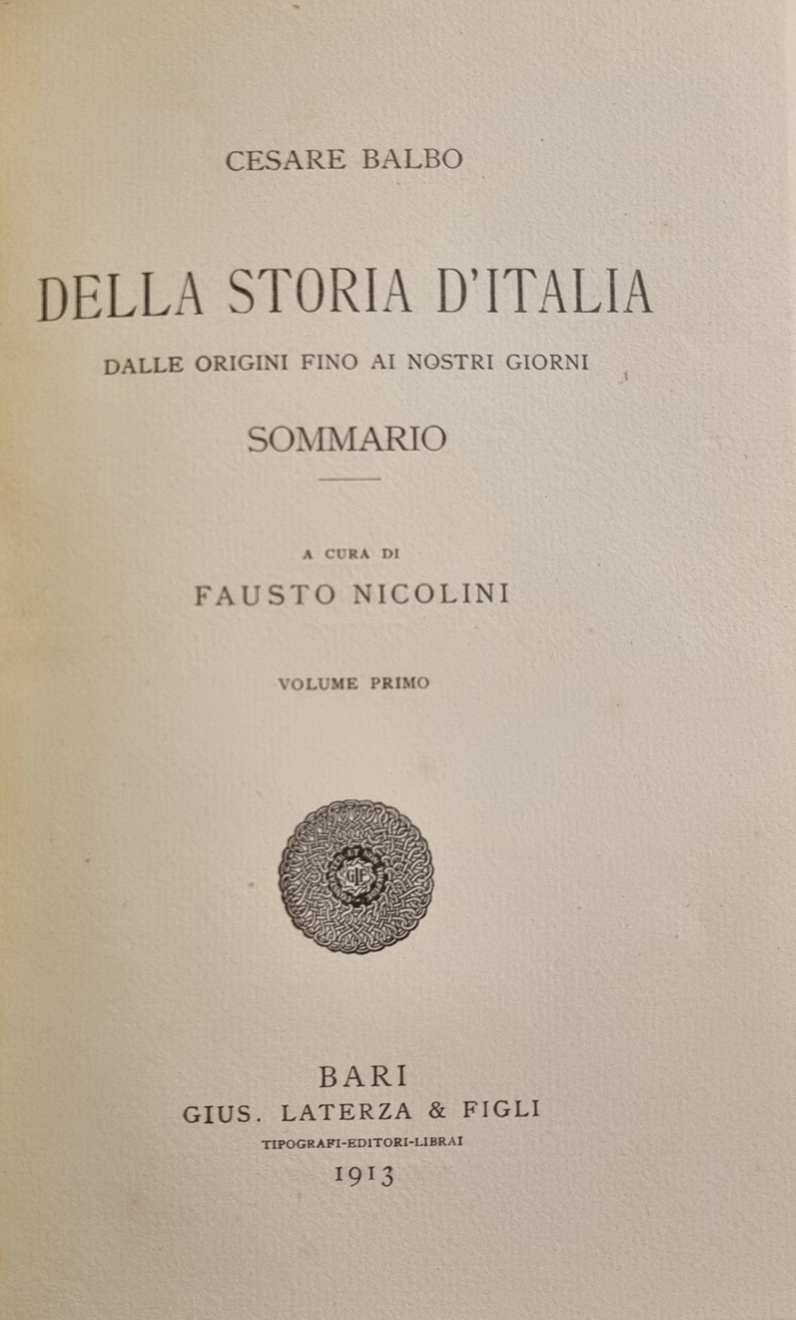 DELLA STORIA D'ITALIA DALLE ORIGINI FINO AI NOSTRI GIORNI