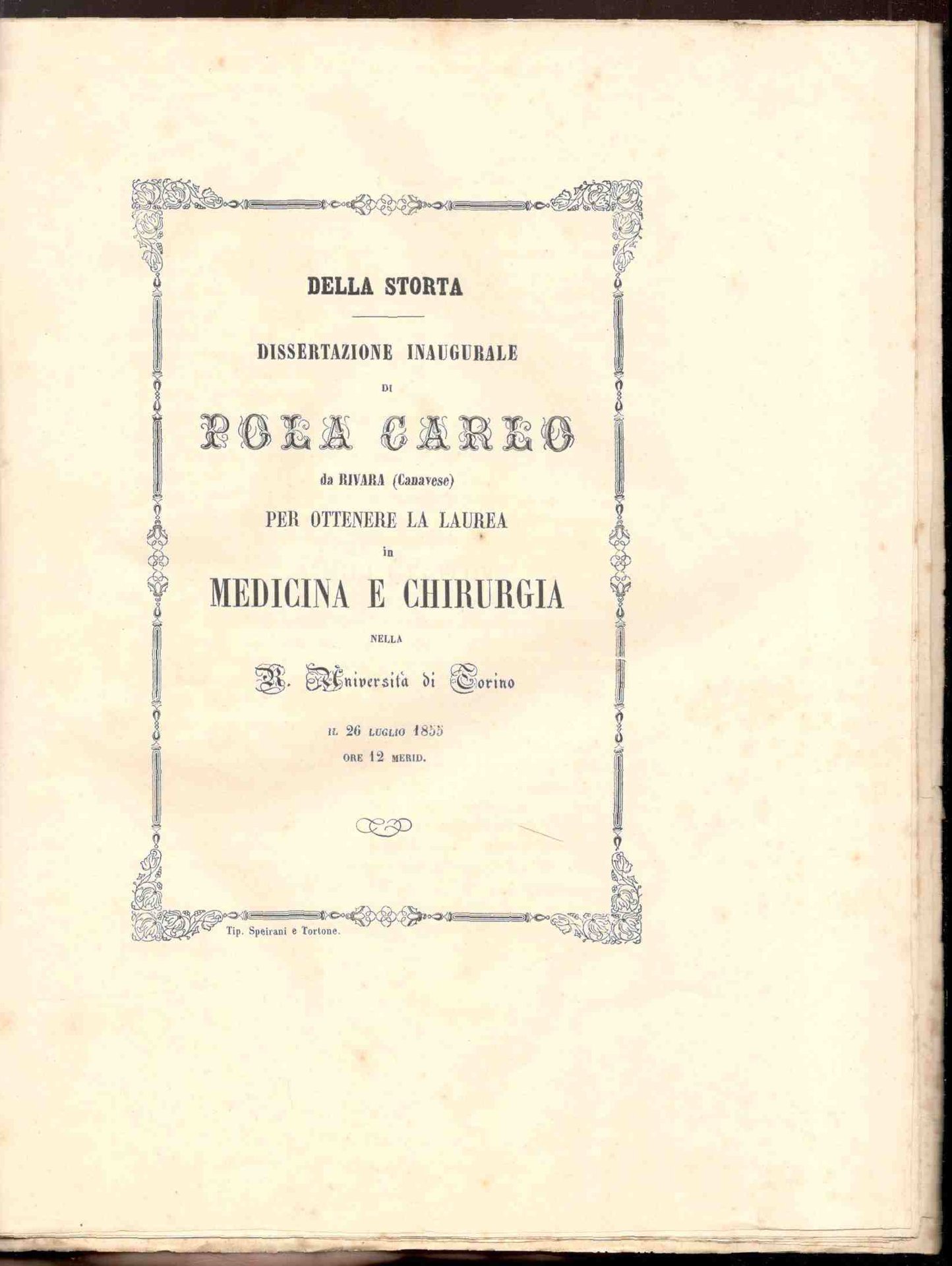 Della storta. Dissertazione inaugurale di Pola Carlo da Rivara (Canavese) per ottenere la laurea in medicina e chirurgia nella R. Università di Torino il 26 luglio 1855