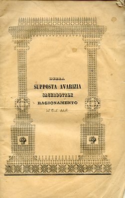 Della supposta avarizia sacerdotale ossia il Clero vendicato e difeso dalla taccia d'interessato ed avaro. Ragionamento