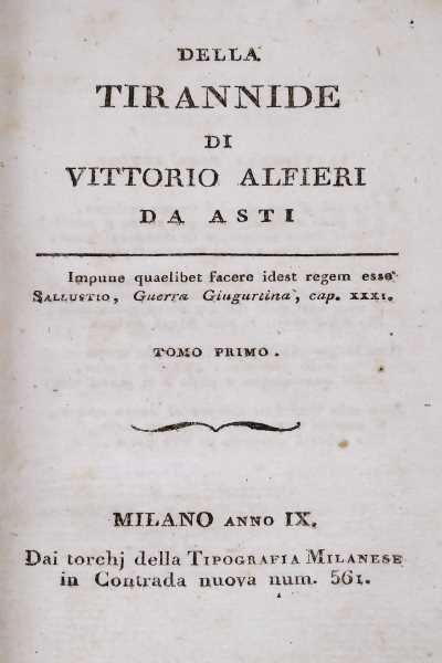 Della tirannide di Vittorio Alfieri da Asti. Tomo primo e tomo secondo