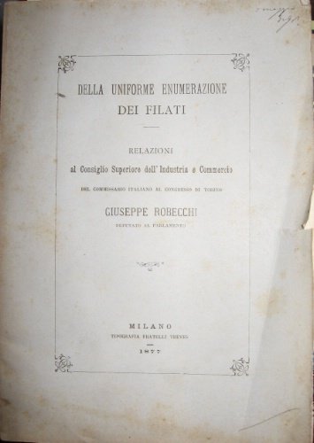 Della uniforme enumerazione dei filati. Relazioni al Consiglio Superiore dell'Industria e Commercio del Commissario Italiano al Congresso di Torino.