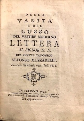 Della vanità e del lusso del vestire moderno. Lettera al Signor N.N. del conte canonico Alfonso Muzzarelli