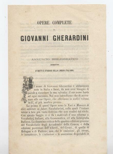- Pagg. 113 con ritratto del Gheradini e in allegato delle "Opere complete di Giovanni Gheradini" su 4 facciate