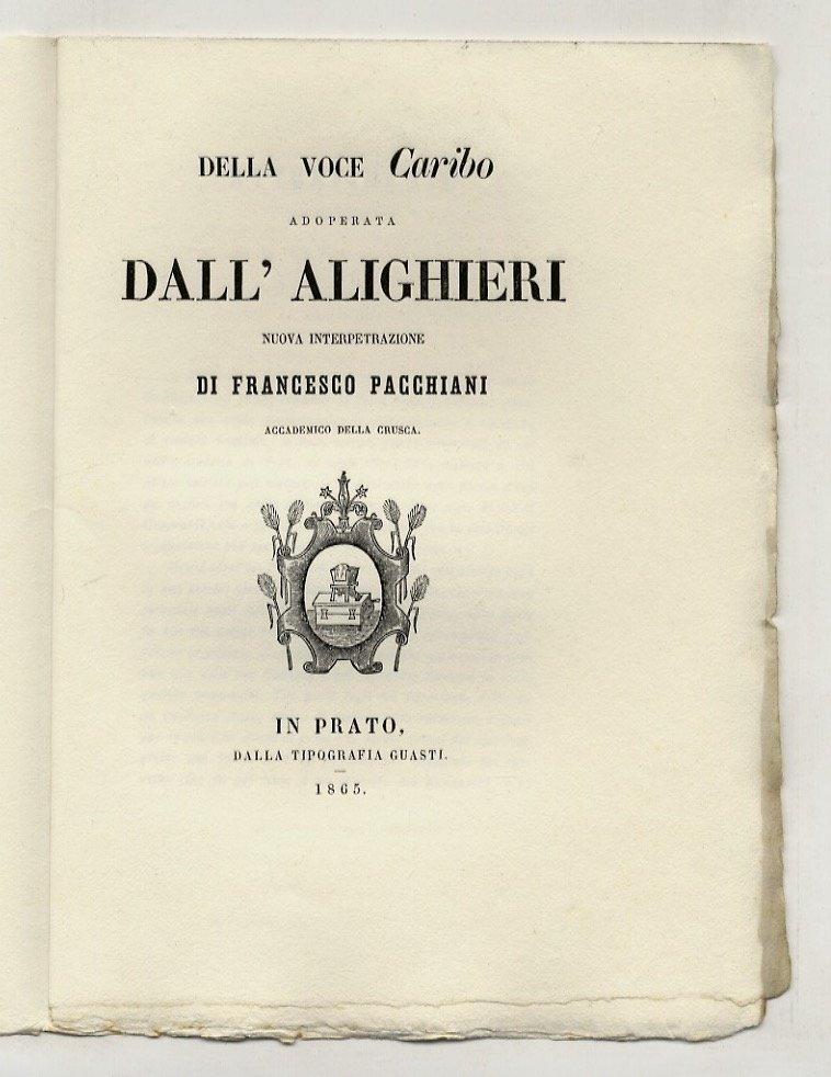 Della voce Caribo, adoperata dall'Alighieri. Nuova interpretazione. Con un “avvertimento” di Cesare Guasti.