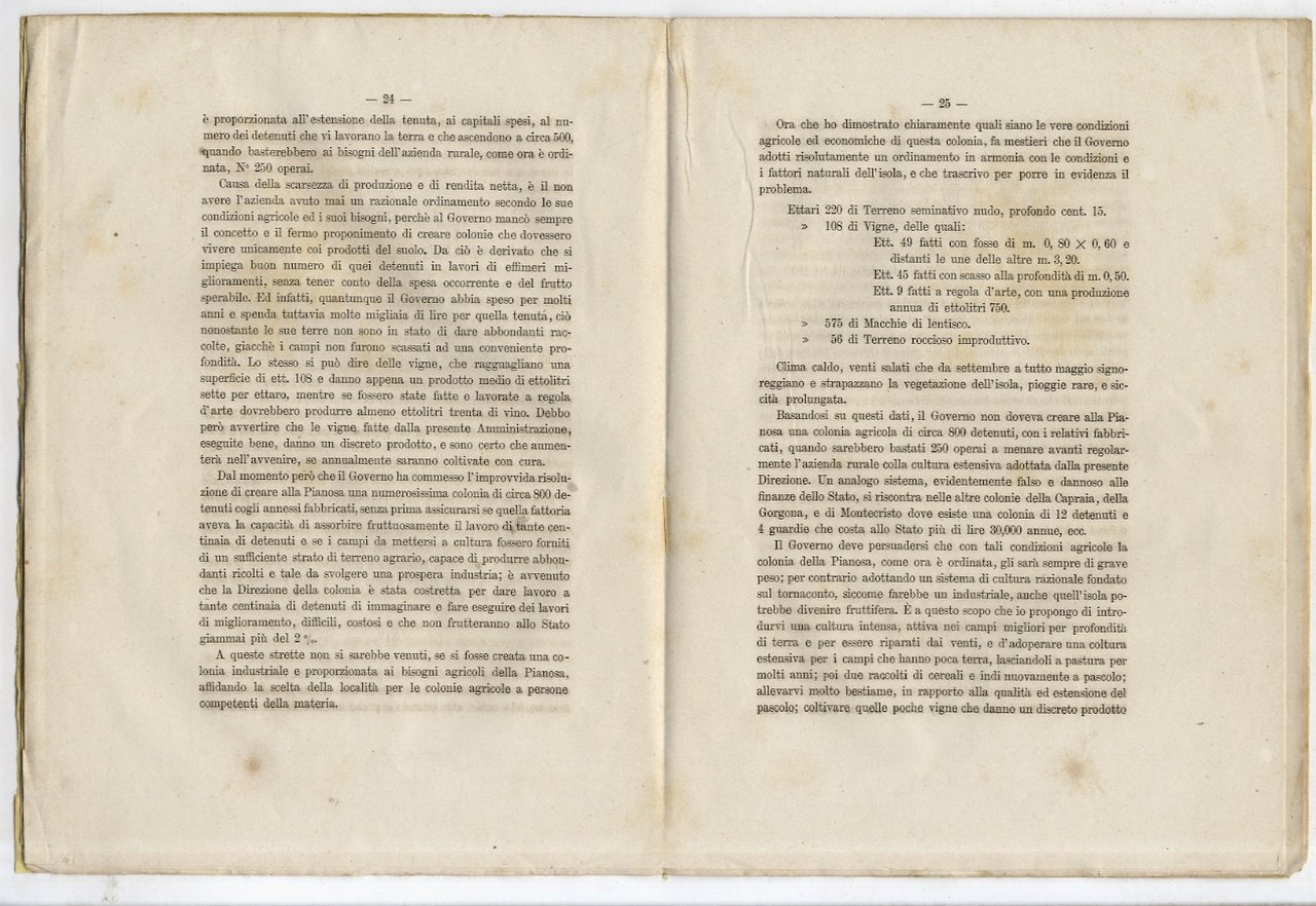 Delle condizioni agricole della Pianosa e dell'ordinamento delle colonie agricole penali in Italia per Ferdinando Fonseca [.].