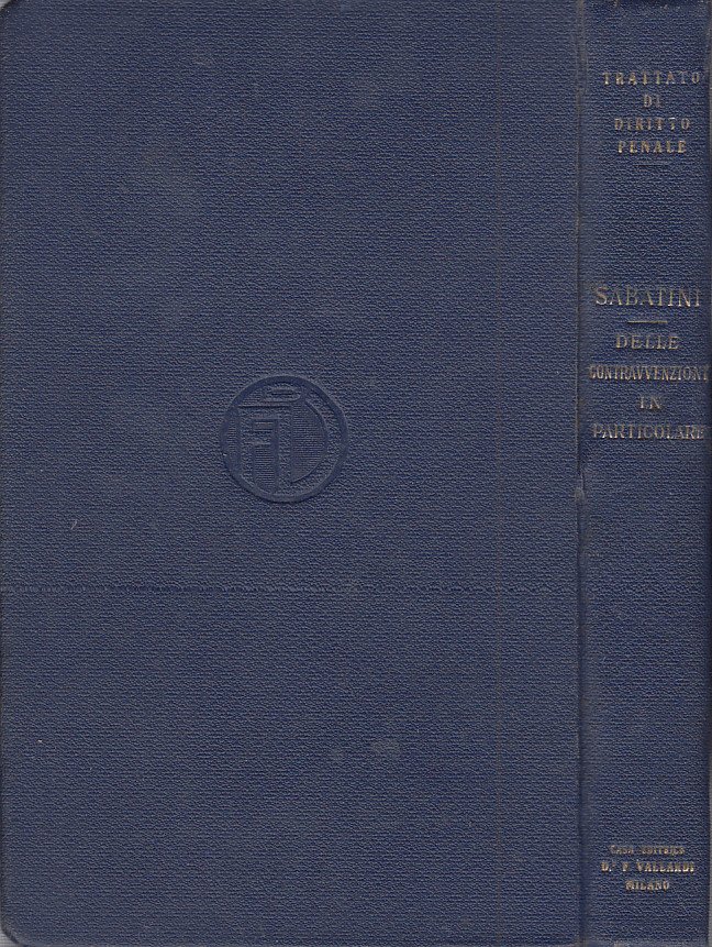 In-8 (Cm 21,8 x 13,5), pp. XV-463, legatura editoriale piena tela con titoli in oro al dorso. e piatto anteriore. Collana Trattato di Diritto Penale coordinato da Eugenio Florian. Poche sottolineature a lapis e matita. BUONO