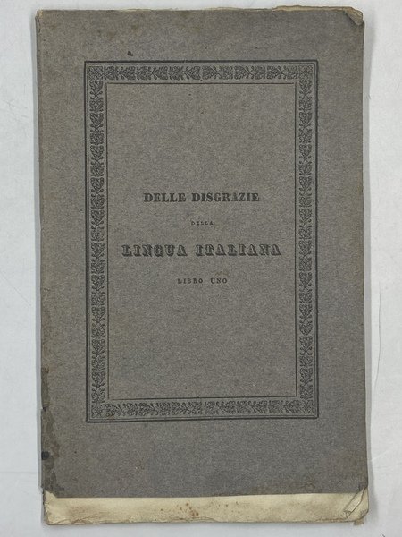 DELLE DISGRAZIE DELLA LINGUA ITALIANA. LIBRO UNO DI ALESSANDRO PAGLIESE.