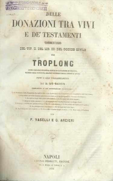 Delle donazioni tra vivi e de' testamenti commentario del tit. II del lib. III del codice civile